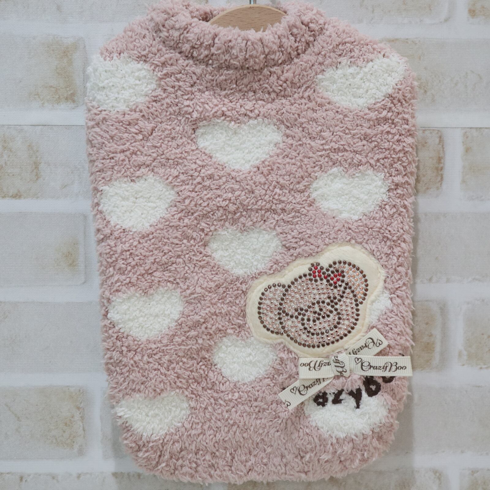 マシュマロハートニット〈M〉〈L〉【CRAZYBOO クレイジーブー】冬物犬服 くまさん犬服 犬用ニット わんこ服 ドッグウェア ペット用品 犬おしゃれ服 ふわもこ犬服 犬服トップス 犬用品 ペット用品