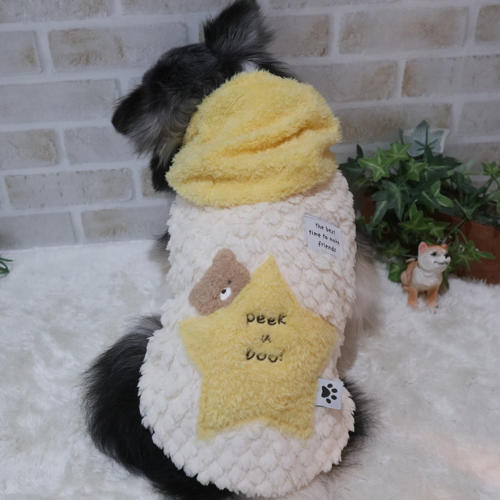 リトルベアスター【Pet Queen/ペットクイーン】犬服 ドッグウェア ペット用品 冬犬服 モフモフ犬服 あったかい犬服 かわいいペット洋服 犬おしゃれ服 フード付き スター犬服